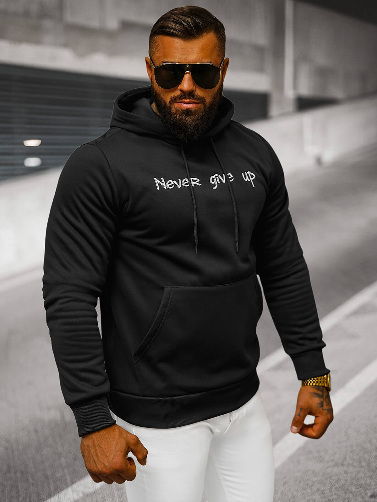 Sweatshirt à capuche homme noir OZONEE JS/27B6512/3