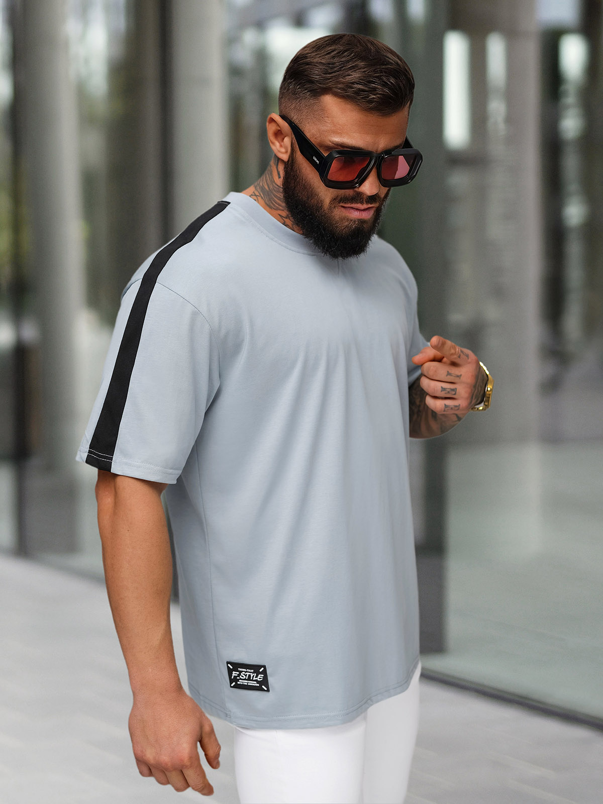 - Le modèle (182 cm, 87 kg) a porte la taille L.
